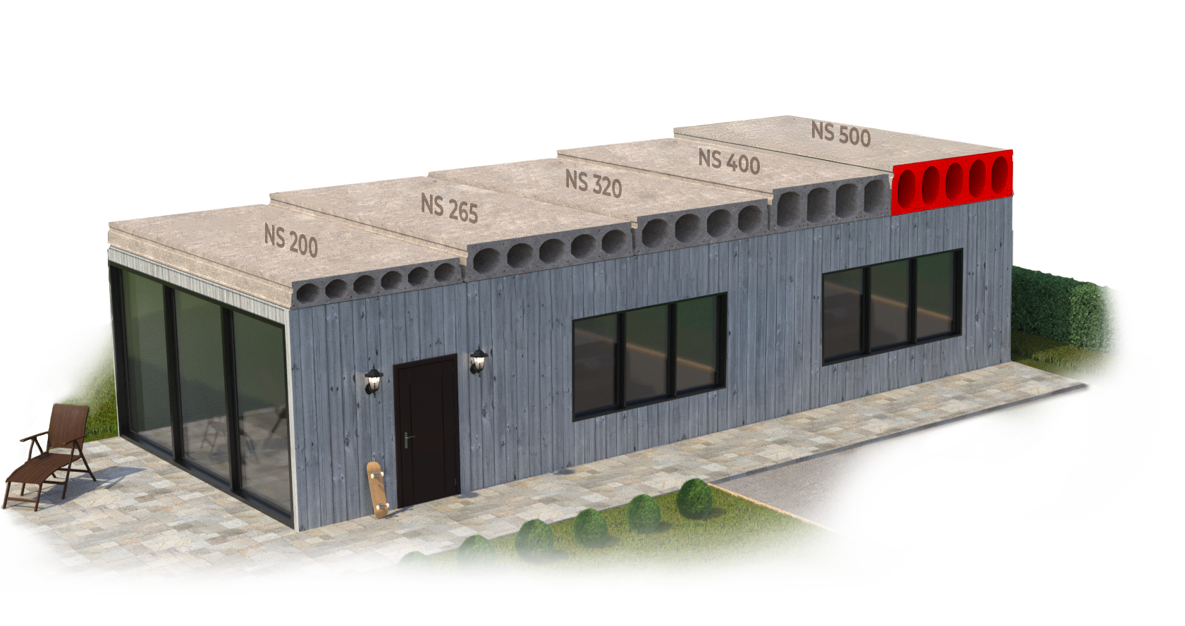Panely NS jsou určené především pro stropní a střešní konstrukce, uložené jako obyčejný nosník, je možné uložit je i jako konzolové uložení.